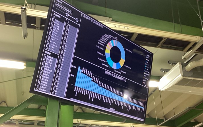工場内大型ディスプレイ(工程別/機械別作業実績時間)