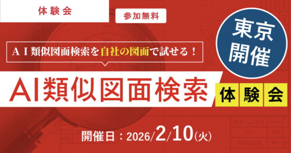 体験会・イベント 【第98回_東京開催】自社の図面で試せる!AI類似図面検索体験会 日時: 2026年2月10日(火)