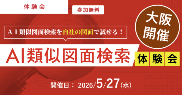 体験会・イベント 【第108回_大阪開催】自社の図面で試せる!AI類似図面検索体験会 日時: 2026年5月27日(水)