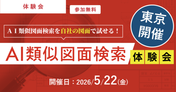 体験会・イベント 【第107回_東京開催】自社の図面で試せる!AI類似図面検索体験会 日時: 2026年5月22日(金)