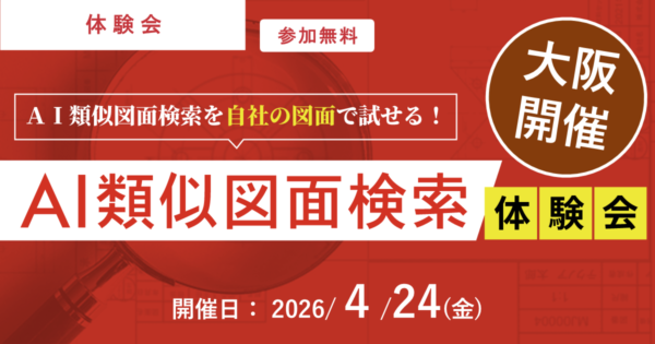 体験会・イベント 【第106回_大阪開催】自社の図面で試せる!AI類似図面検索体験会 日時: 2026年4月24日(金)