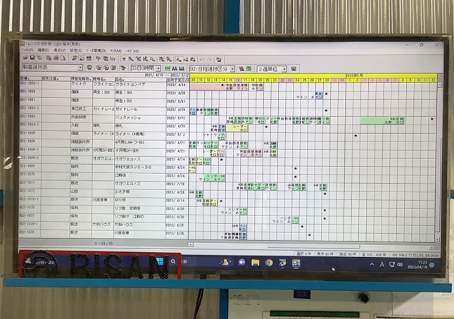 岡山県の株式会社ビサン様では、大型モニターで日程計画の画面を共有することで、社員の納期厳守意識を向上させることに成功しています。